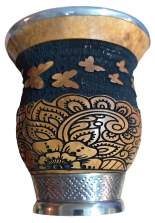 Mate 360 Pie de Hierro c/v Tallado Calabaza Motivo c/ Flores