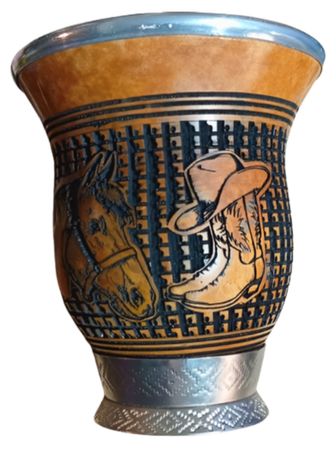 Mate 360 Pie de Hierro c/v Tallado Calabaza Motivo c/ Caballo
