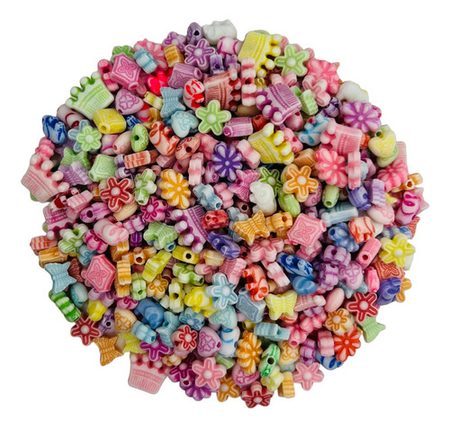 Cuentas de plastico con forma 7x5mm x 25grs.