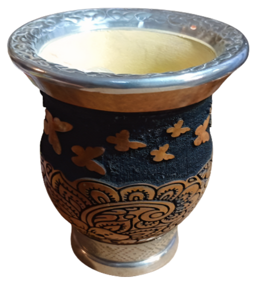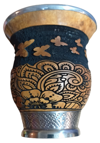 Mate 360 Pie de Hierro c/v Tallado Calabaza Motivo c/ Flores