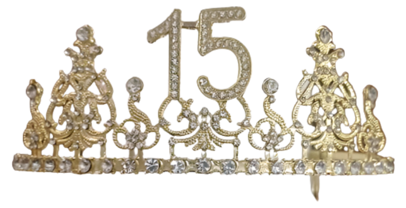 Tiara de Metal 15 c/ Piedra y Strass Dorada