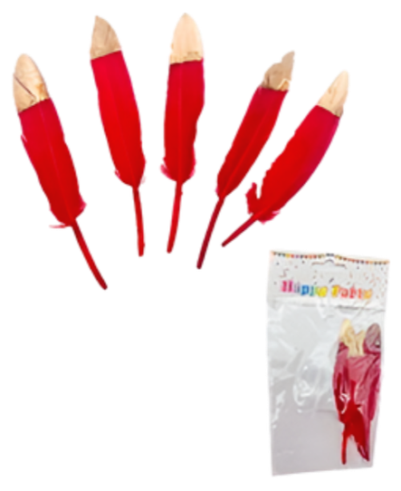 Pluma Roja C/ Punta Dorada 14cm. aprox. paq. 6 und.