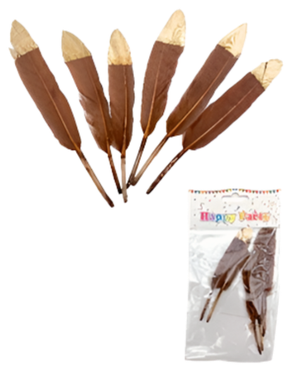 Pluma Marrón C/ Punta Dorada 14cm. aprox. paq. 6 und.