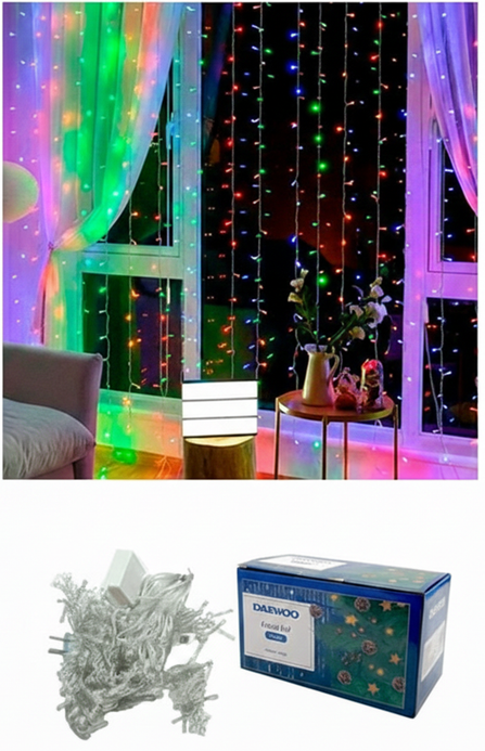Cortina Led DAEWOO 192 luces 3mts. x 2mts. Multicolor c/ 10 secuencias 220v