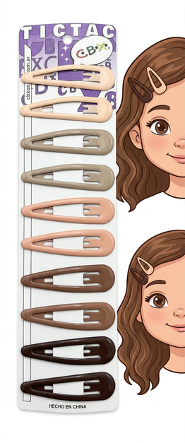 Hebilla Tic Tac Engomada 7cm. Blister 10 und. Pastel
