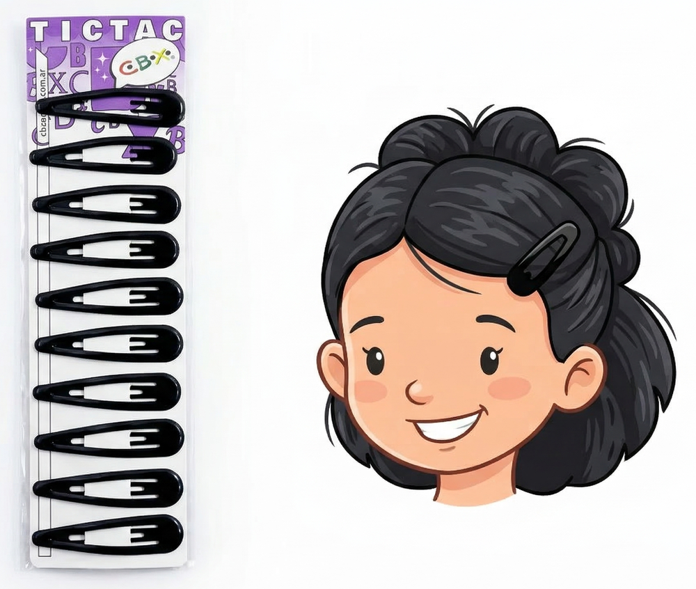 Hebilla Tic Tac Engomada 7cm. Blister 10 und. Negro